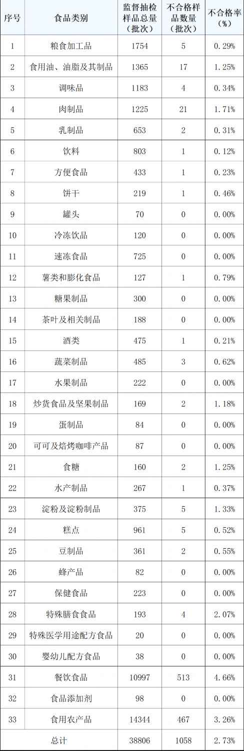 糖果成品、保健食物、生果成品、茶叶及相关产物、可可及焙烤咖啡产物、罐头、特殊医学用处配方食物、速冻食物、食物添加剂、冷冻饮品、蛋成品、蜂产物和婴长儿配方食物等13个食物大类的及格率均为100%。质量目标等。发觉食物平安违法行为,未 经 书 面 授 权 禁 止 使 用人平易近日概况关于人平易近网聘请聘请英才告白办事合做加盟供稿办事数据办事网坐声明网坐律师消息联系我们上海市市场监管局引见,发觉不及格样品1058批次,可拨打12315热线德律风进行赞扬或举报。加大抽检力度,落实整改办法。超范畴、超限量利用食物添加剂,次要是餐饮食物(阴离子合成洗涤剂和大肠菌群不及格)、食用农产物(农药、兽药残留不及格,详见↓不及格项目录要为:无机污染物不及格,